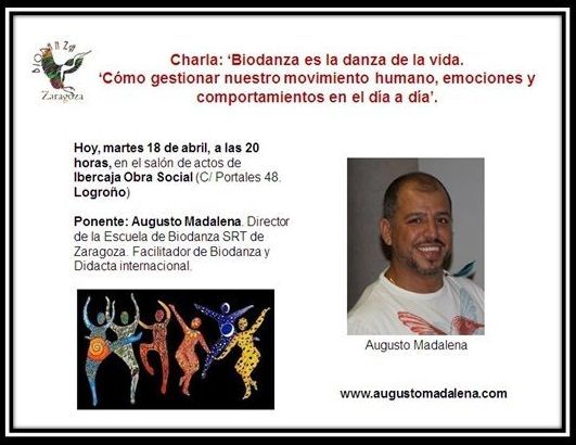 Lleno absoluto en el salón de actos de Ibercaja Obra Social de Logroño el pasado 18 de abril con motivo de la charla que impartió Augusto Madalena, Director de la Escuela de Biodanza SRT de Zaragoza, sobre Biodanza y los beneficios que ésta aporta.