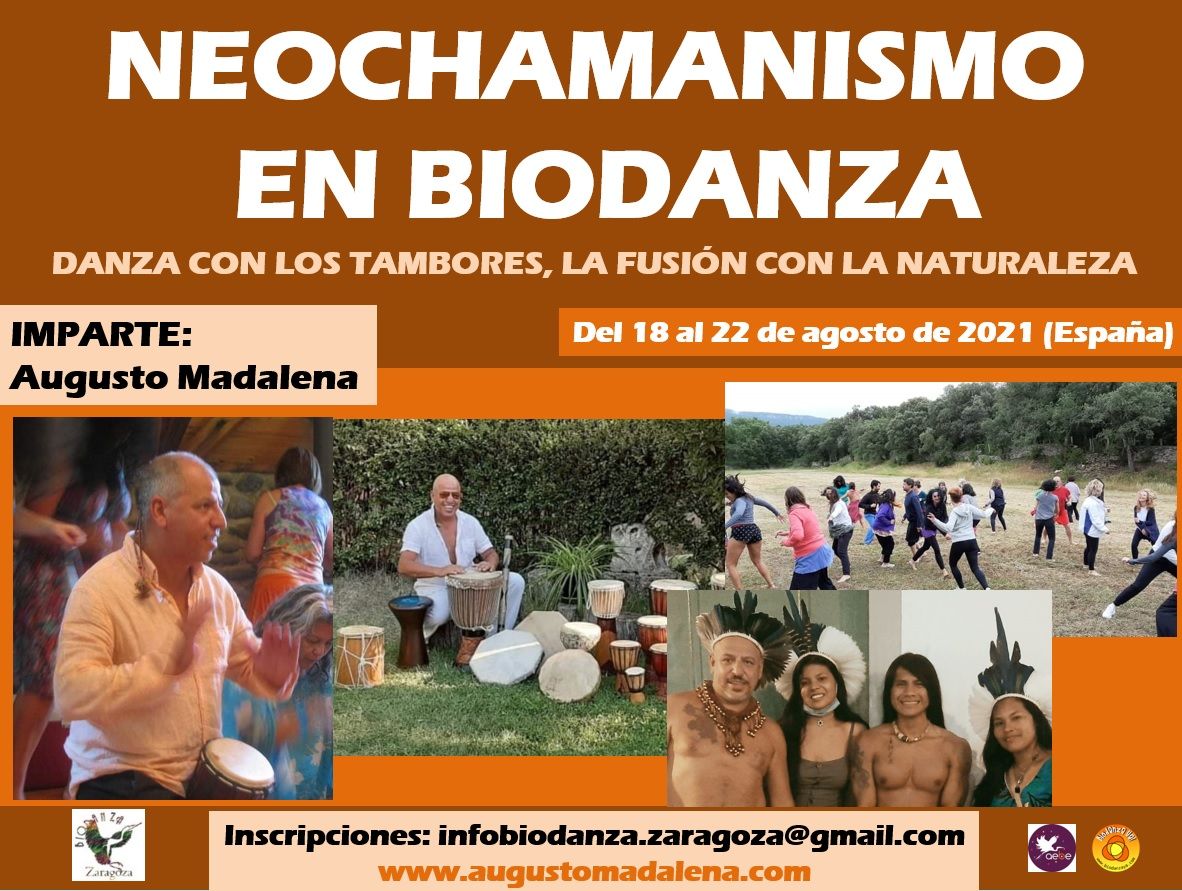 8 Days Process son 8 días de proceso de transformación y profundización existencial de convivencia y vivencias en la naturaleza. Se divide en dos momentos. Los primeros 4 días, NEOCHAMANISMO EN BIODANZA. Danza de los tambores, la fusión con la naturaleza (del 18 al 22 de agosto), donde abordaremos temas centrados en la espiritualidad, la salud física, mental y emocional; la expansión de conciencia a partir de la vitalidad, sexualidad, creatividad, afectividad y trascendencia; los cantos chamánicos, la voz rítmica y melódica con los tambores, y la percepción ampliada mística-biocéntrica. Los siguientes 4 días, PROYECTO BARRONAUTAS. El susurro del éxtasis (del 22 al 25 de agosto), donde nos centraremos en aspectos de la sexualidad como el erotismo, deseo, placer, armonía y amor; y aspectos de la creatividad como la creación artística, el desbloqueo y la apertura del núcleo creativo para reanimar y dar impulso al proyecto existencial. Un total de 8 días de proceso existencial, con Augusto Madalena. Más información en el archivo adjunto.
